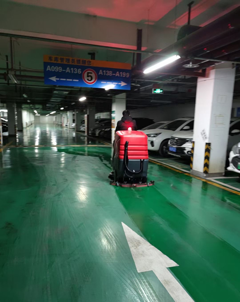 還有像地下停車場這類的大型場所,采用駕駛式洗地機也可輕松完成工作。