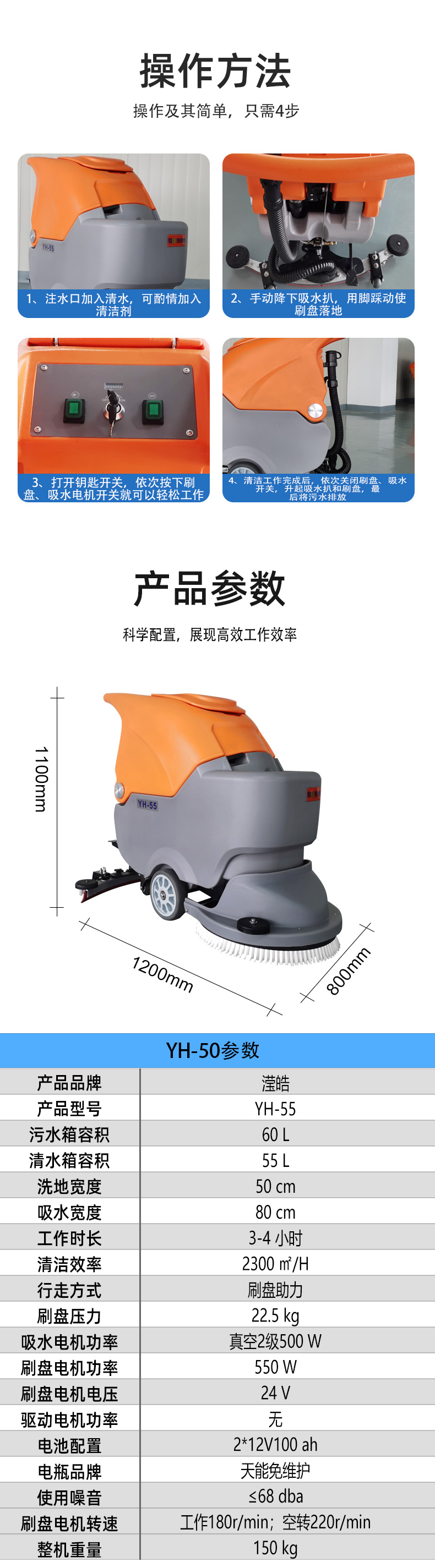 簡要描述:瀅皓YH-55采用2塊100AH品牌超威或安能免維護電瓶,集灑水、刷地、去污、吸干為一體全自動設備...
